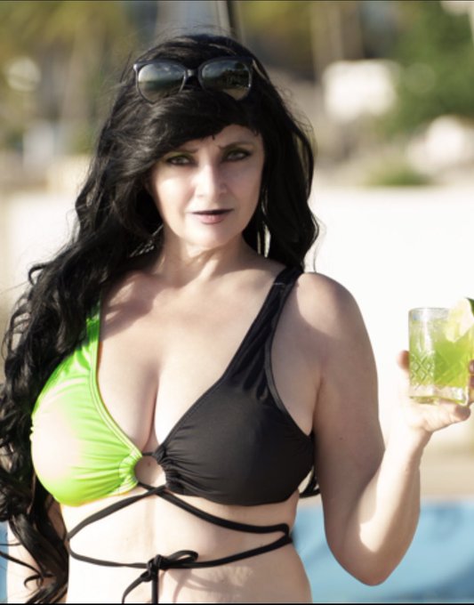 Just a supervillain, trying to relax and have some “me time” away from dorky mad scientists and perky, interfering cheerleaders. Move along! #shego #shegocosplay #swimsuitshego #swimsuitshegocosplay #bikinishego #cosplay #kimpossible #kimpossiblecosplay #villain #badguy #evil