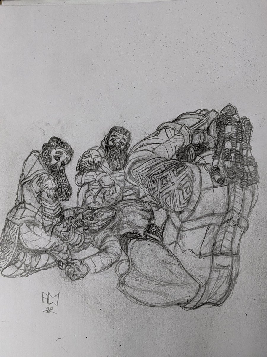 #HillDwarves trying to help out the #shielddwarf with runes. My first time trying to draw dreadlocks. #dnd #dndart #SavageWorlds #pencilart #pencildrawing #pencilsketch