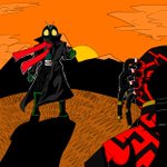 Batta Aug VS Kumo Aug (Shin Kamen Rider) . Tried going for the western feel of early '71 Rider (also adjusted my style a bit lol) . #fanart #digitalart #ArtistOnTwitter #KamenRider #shinkamenrider #chairmanarts