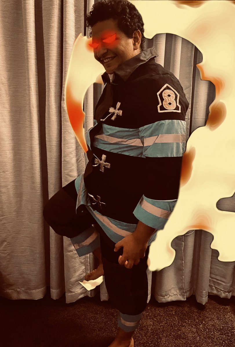 I bet you ain know I was part of the fire force now did ya? 🔥🧑🏾🚒🔥 Fire force bomber made by @kaijusixtysix on Instagram! Be sure to check out their collection!!! Glad my bro put me on to fire force. ⚔️ #casualcosplay #shinrakusakabe #animeclothing #fireforce #anime