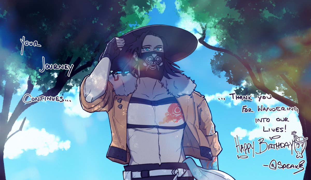 -🎂🏹🌄- Couldn't be patient. Posting now. Thank you Shinri! You're a swell fella and I hope you have a great 365 days of the year. [Textless image in replies] -- #birthdaykoi2023 #ShinriCelebrateThis2023 #JosuijiArt