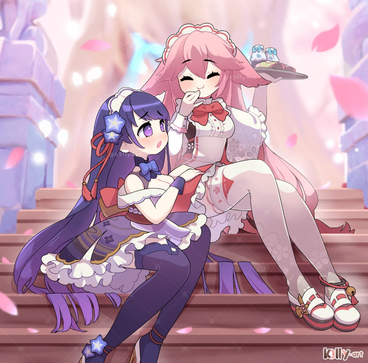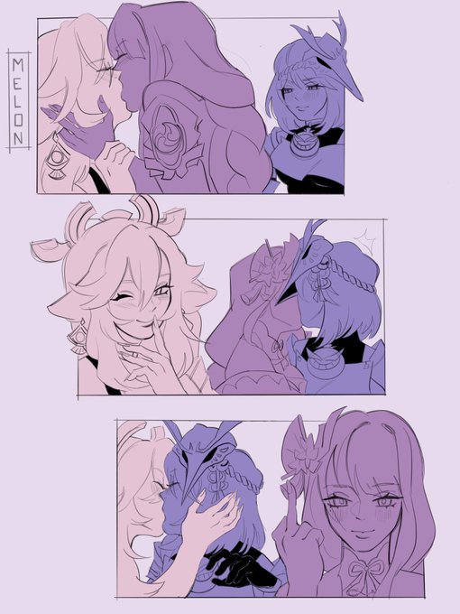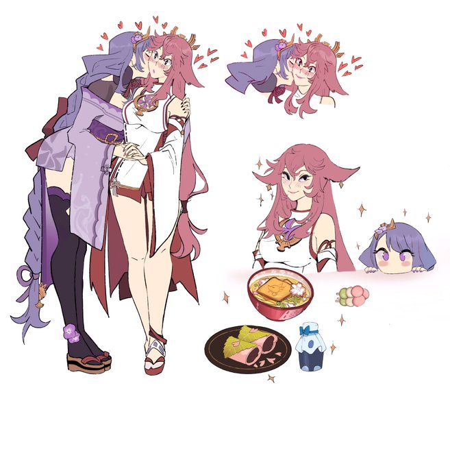 Vi varios dibujos así y quise hacerlo también. Jsjasjj #genshinimpact #fanart #ship #shogunraiden #yaemiko #kujousara
