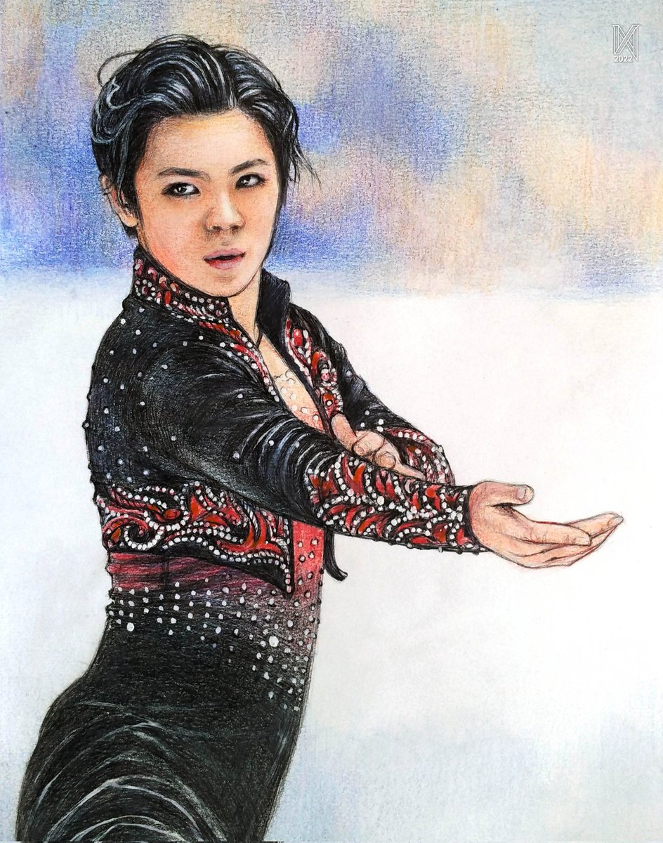 DAY13: FREE SKATE まさに『動くアート』✨ フィギュアスケーター・宇野昌磨の真骨頂🤩👍 #shomatober2022 #skatetober2022 #宇野昌磨 #shomauno #水彩色鉛筆 📸AFLO SPORTS