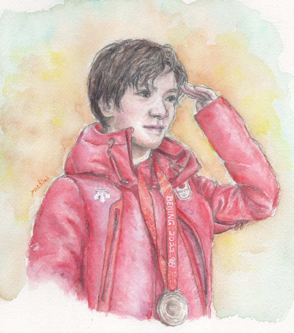 DAY: 7 OLYMPICS 静かに喜びを嚙み締めているような、 そんな印象を受けた北京オリンピックの 表彰式だった✨🥉✨ #shomatober2022 #skatetober2022 #宇野昌磨 #shomauno #水彩色鉛筆 📸共同通信社