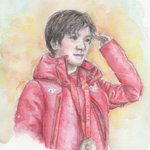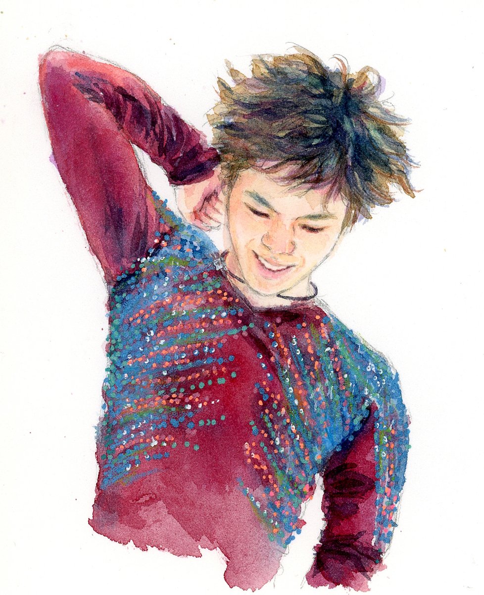 #shomatober Day18 Sparkle いつも眩しすぎる昌磨くん✨ スケカナファイト🔥 #shomatober2022 #skatetober2022 #宇野昌磨 #透明水彩 #Picsart