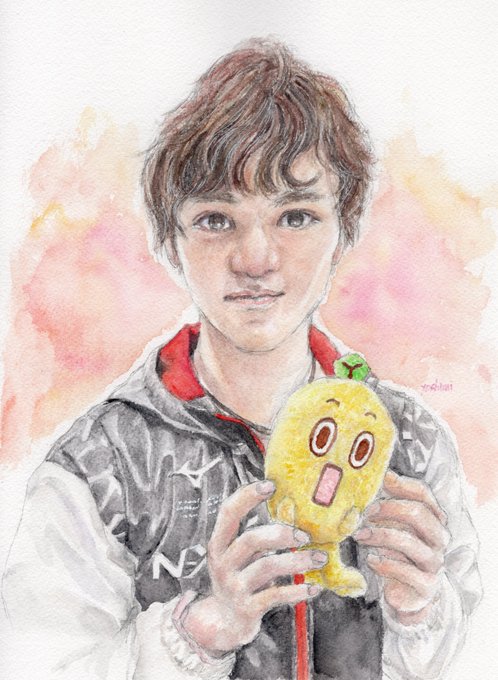 DAY8: COLLABORATION あまりに可愛かったので、つい…☺️ 奇跡の24歳…とナナナ🍌 #shomatober2022 #skatetober2022 #宇野昌磨 #shomauno #水彩色鉛筆 📸テレビ東京