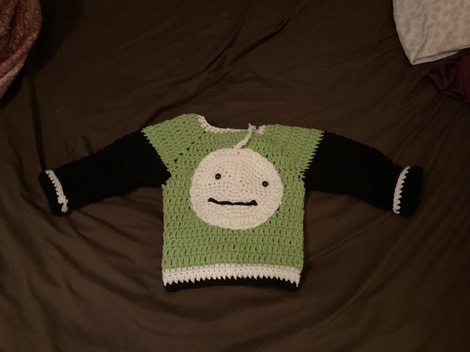 Another Dream kid’s sweater: Completed! This time, with black sleeves and white trim! #DreamFanart .@Dream__Fanart #Shopupdates #Crochet