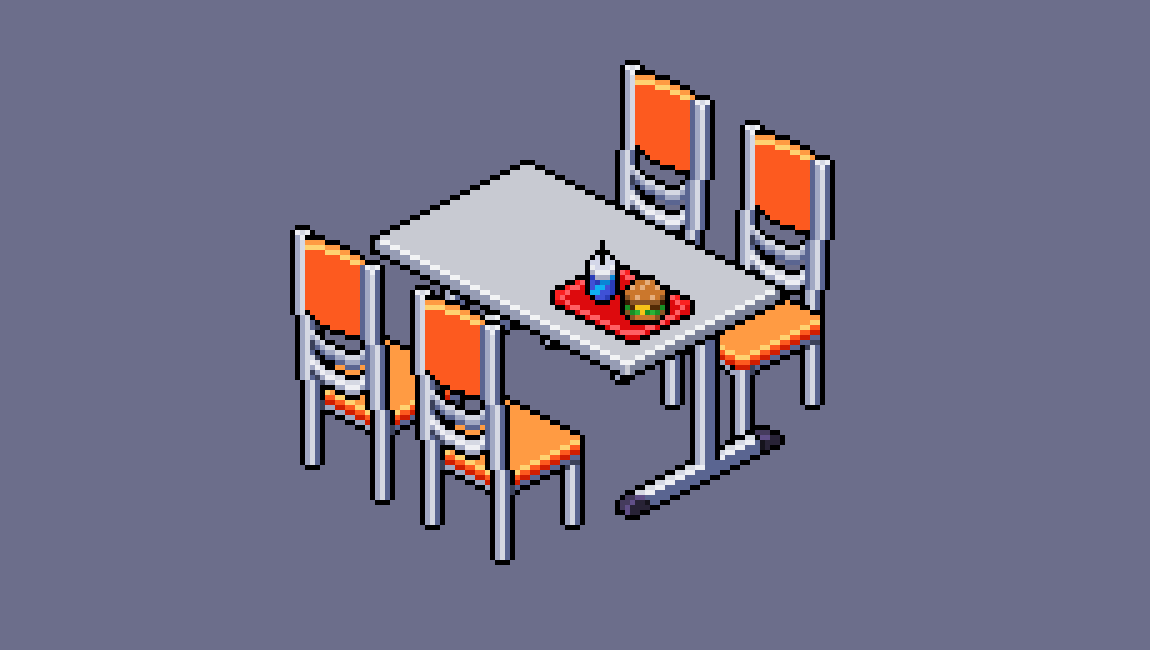 For today, a simple food court table you'd find in a #ShoppingMall :3! Process video in the Thread! #PixelArt #ドット絵 @PyxelEdit #pixel_dailies @Pixel_Dailies