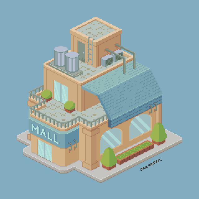 Some odd #ShoppingMall for yesterday's #pixel_dailies. *again, i spent too much time on it. enjoying this #isometric practice tho. @Pixel_Dailies #pixelart #ドット絵 #aseprite