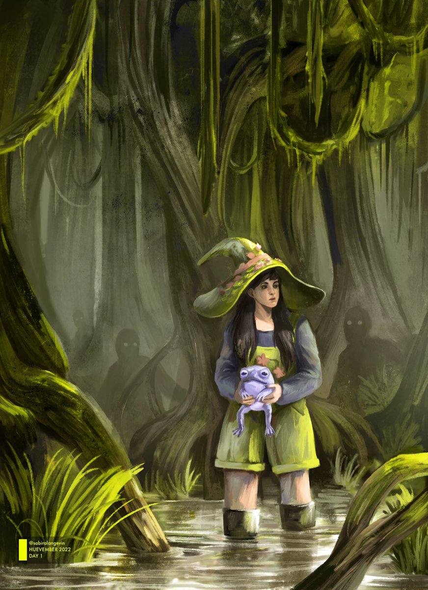 This year I’m giving #Huevember a shot! A painting a day for a whole month, each one a different colour. Brute forcing my way back to making art 💪🏼 Day 1 - don’t listen to the whispers… 🐸 [#Huevember2022 #EmpiresSMPfanart #empiressmp #shubblefanart]