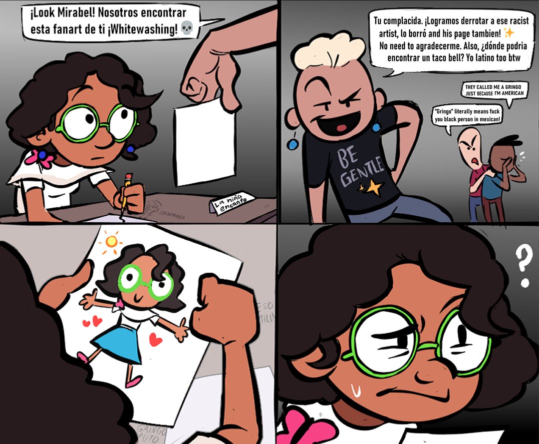 #ShutUpGringo2022 a la vergaaa literalmente mirabel sin melanina. Al chile ponganse verga gringos puñetas, no le hicieron mucho alboroto a un juguete oficial de luisa donde hasta la pusieron con ojos verdes XD pero si se meten con fanarts con iluminacion alta en general, no mamen