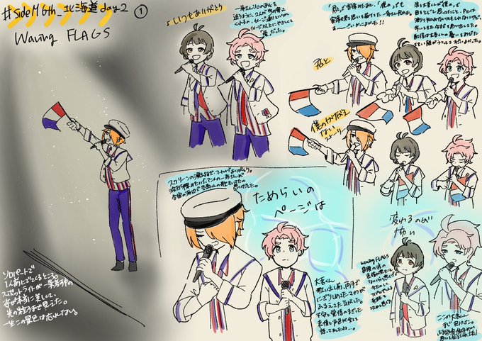 #SideM6th_北海道day2 の現地レポ① Waving FLAGS演出最高でした!!! ソロパートのとこの一希さんにスポットが当たるとこの画が本当に綺麗だった 分身して360°から見たかったけど、現地で見えた景色はこれでした