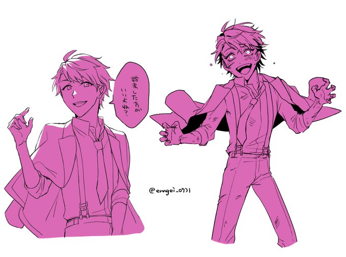 Day1で衣装のクオリティがとても高くてびっくり嬉しかったので 担当が不安げな顔してジャージを着て舞台に立つのをね!待ちきれないので!フライングお絵描き!! #SideMPRS超常事変_day2