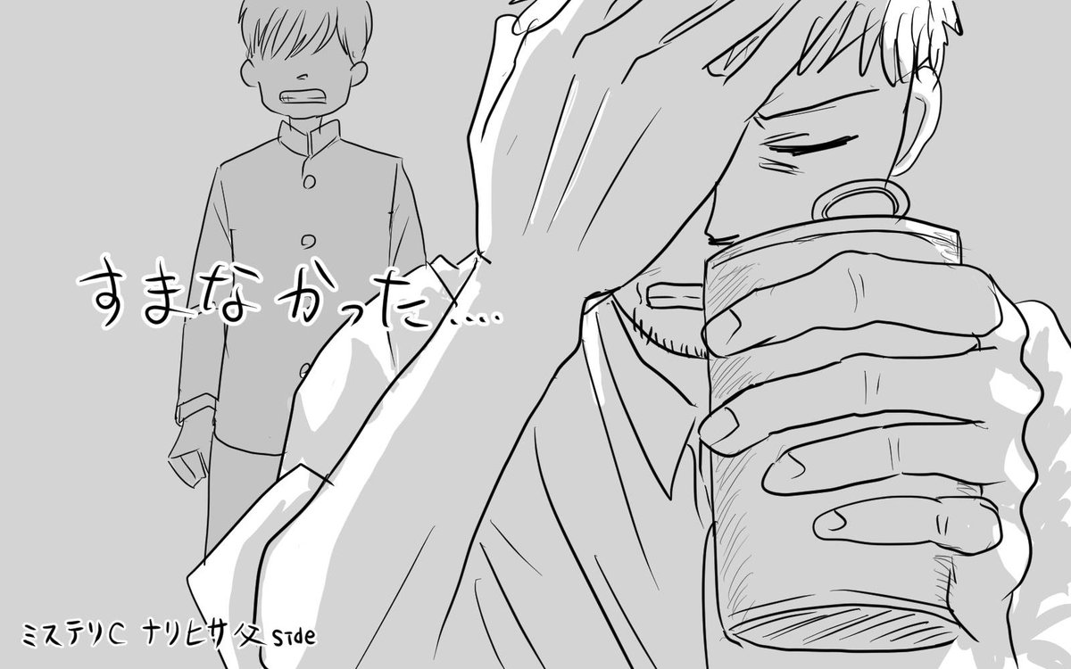 《 Side Story :ナリヒサと父》 ミツキといじめをしていた ナリヒサと アルコール依存と暴力がやめられない ナリヒサの父親 2人の中には 互いには知らない 強い心の叫びがあった… #オヤビンとコブン #イラスト #SideStoryOC #いじめ #キリスト教福音宣教会