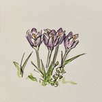 It was a spring-like day in NYC today and the crocuses were blooming in violet, yellow and white. A little bee is hidden among the petals. May we live in a peaceful world. #art #ink #watercolor #garden #peace #SignsofSpringNYC #crocuses #statenisland