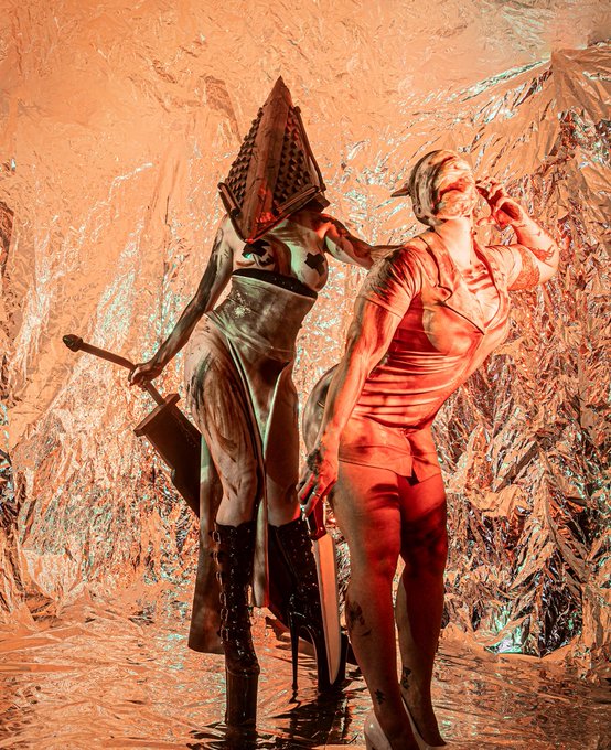 Anyone else preparing themselves to be disappointed by new #silenthill content? I am hopeful, but also realistic 😂 Cosplays made by me 🖤 #silenthillnurse #pyramidhead #HorrorCommunity #cosplay #cosplayergirl #spooky #horror