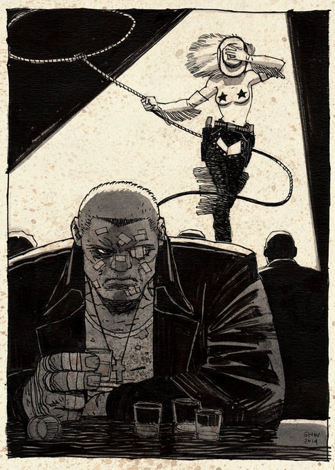 SIN CITY Old ink+watercolor drawing with some new digital textures Dibujo de hace unos años ya, con un añadido de textura digital #ink #watercolor #sincity #frankmiller @FrankMillerInk
