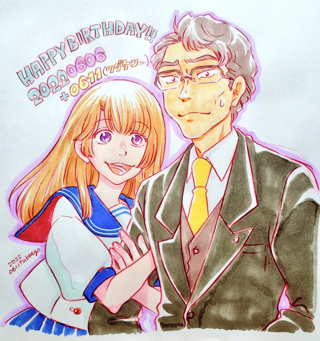 おかしな2人 その7 シオンと支社長 今日のオフ会のために描きました! お誕生日おめでとうございます🎂🎉 #アイの歌声を聴かせて #アイうた #SingaBitofHarmony ひしさんありがとうございます~! オフ会に便乗しちゃいました😋