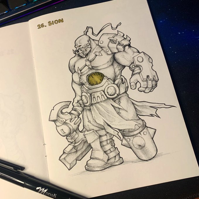DAY TWELVE OF DRAWING A LEAGUE CHAMPION EVERY DAY! sion, the undead juggernaut 🚩 #ArtofLegends #leagueoflegends #sion