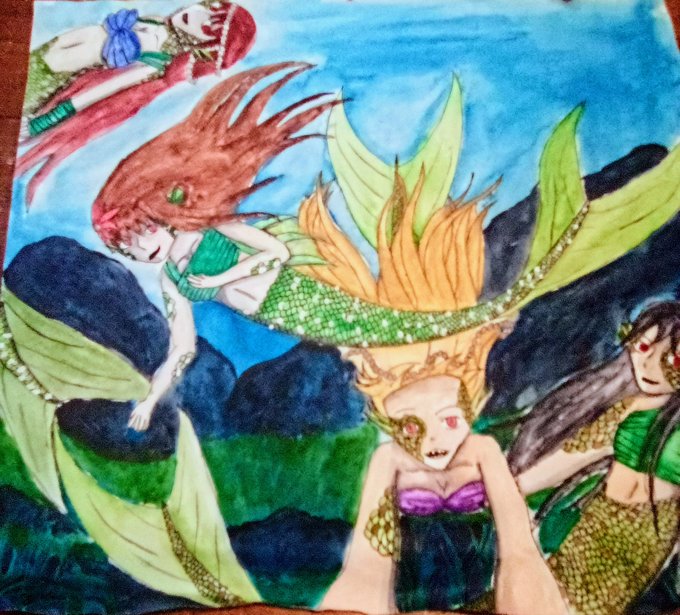Mermay post! I may not be participating in Mermay but I wanted to at least post a drawing of mermaids! #mermay2022 #mermaid #mermay #watercolorpainting #watercolormermaids #sirens #originalart #originalmermaid #lakedrawing #oldpainting