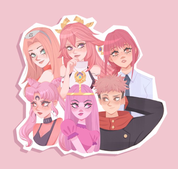 🌷🌸 sixfanarts pink hair 🌸🌷 #SixFanartsChallenge #naruto #genshinimpact #chainsawman #sailormoon #AdventureTime #JujutsuKaisen