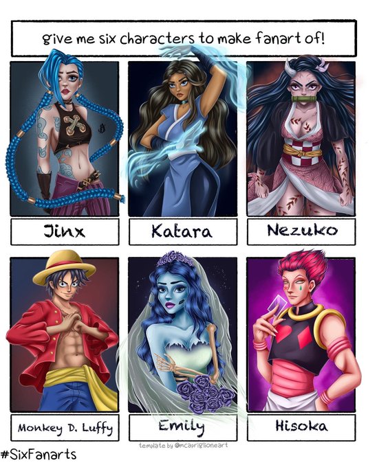 Gm ☀️ I finally managed to complete #SixFanarts challenge 🙏🏻 It took me a while but I finally did it 💪 I’ve really enjoyed making #fanart😍Next one is #Naruto series 🔥 Which one is your favourite out of these six? 👀 #sixfanartchallenge