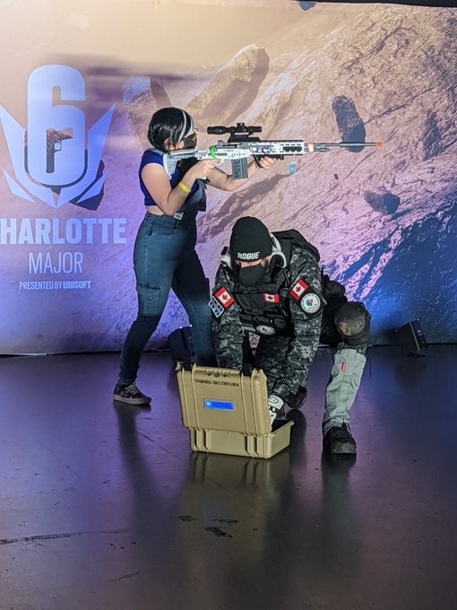 "Always be aware of your surroundings" Another shot from the #sixmajor with @RockkaebiDaze awesome Doki #R6Community #RainbowSixSiege #cosplay
