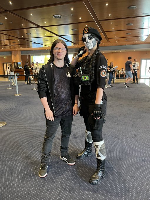 Nach zwei Jahren mal wider @teilzeitbunt getroffen in ihrem Caveira cosplay. Wie man sich in 2 Jahren verändert hat aber einfach immer noch die gleiche Schuhe hat. Links: 2022 Rechts: 2020 #sixmajor #SixMajorBerlin #RainbowSix #caveira #cosplay