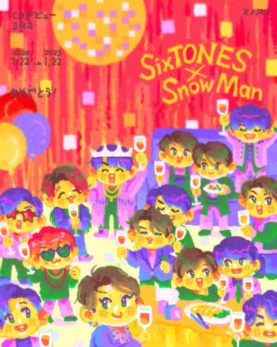 私もスノストの3年前の過去絵を🎉 みんなおめでとう! #SnowMan3rdAnniversary #SixTONES3rdAnniversary #SnowManデビュー3周年 #SixTONESデビュー3周年