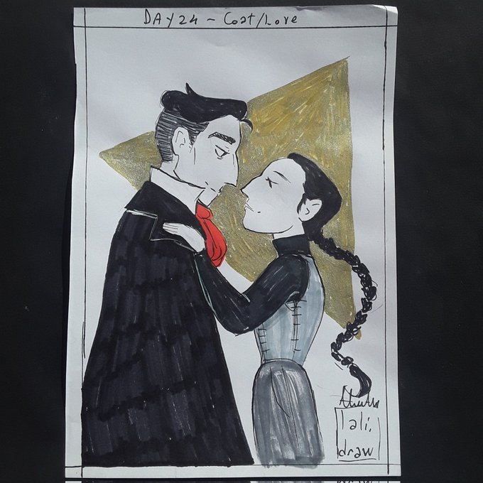 Inktober day 24- Coat/Love [I'm using @diesechuly 's #chulysinktober and coyote_ralyn list from Instagram] . #inktober2022 #Inktober #drawingchallenge #drawing #SixofCrows #kanej