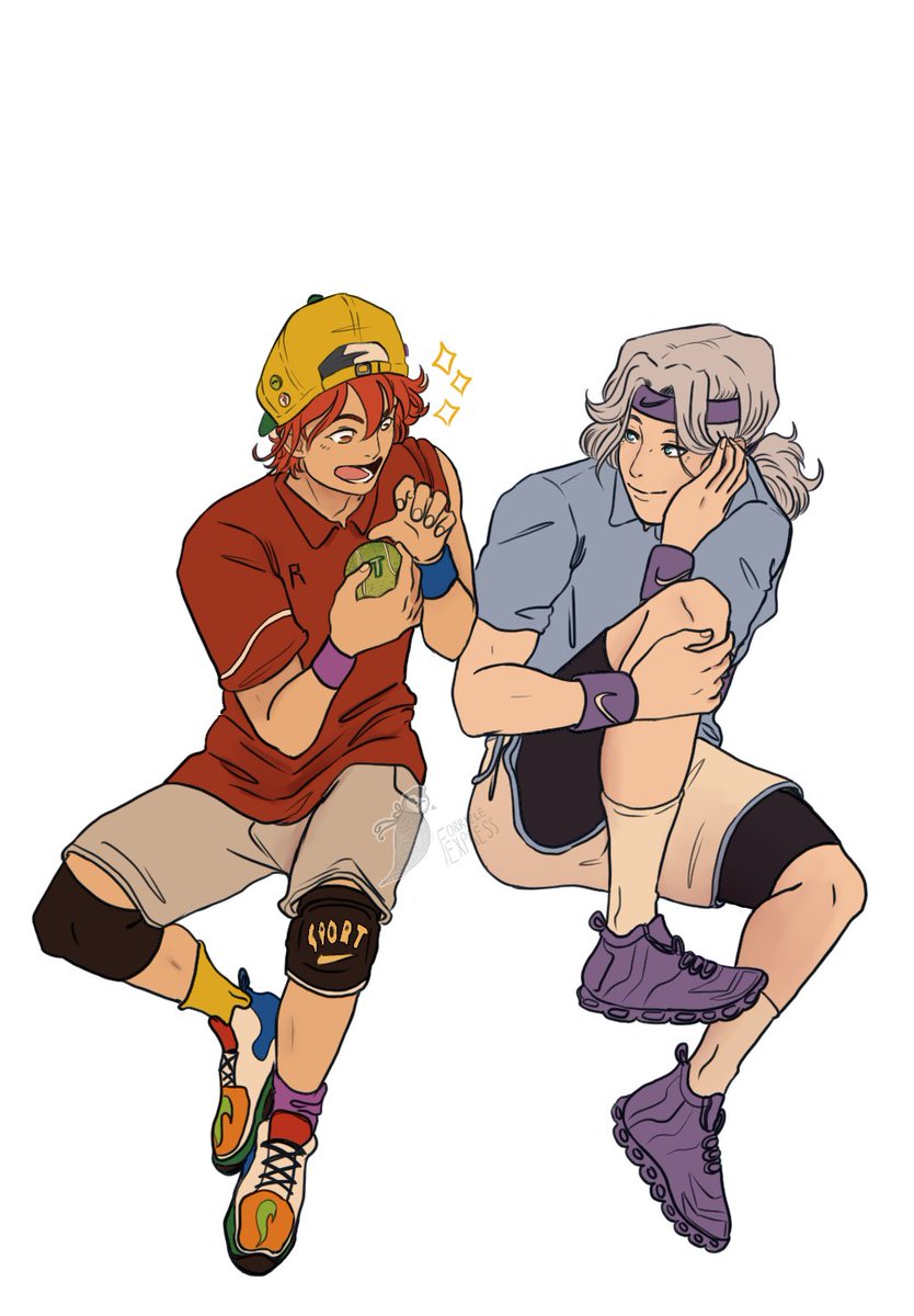 Reki talking about aerodynamics? Probably. Langa happy to be in his company? Absolutely💜 I was inspired by @chaosemmie Sk8 Tennis AU. Also posted up on my IG🌟 #forrizleexpress #SK8THEINFINITY #SK8エスケーエイト #SK8THEINFINITYfanart