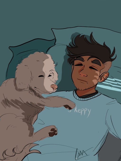 #Skepuary day 6: cuddle up! I tried to draw Rocco. Uh. I’m not good at drawing dogs 😅 #skeppy #SkeppyFanArt