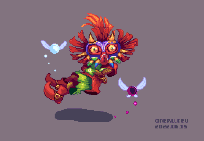 What better way to cap off October than with a prankster wearing a spooky mask? GBA #FireEmblem style pixel art of Skull Kid from The Legend of Zelda: Majora's Mask. #pixelart #fanart #ドット絵 #TheLegendofZelda #MajorasMask #SkullKid #Nintendo