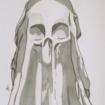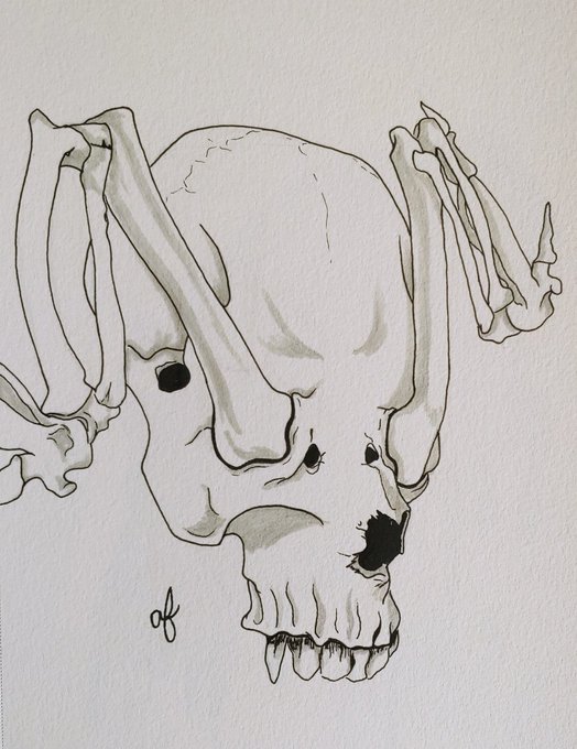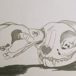 #inktober2022 #inktober #inktoberday9 A #nest with #skulls, because why not. #fountainpen #Pelikan M200 F nib, with #ink #Diamine Winter Spice and #Sailor ProGear Slim EF with Sailor Black.