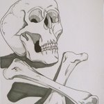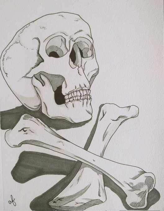 First 4 days; Crossbones Draped Trophy Revenge . #MonkiesArt #traditionalart . #inktober2022 #skulls