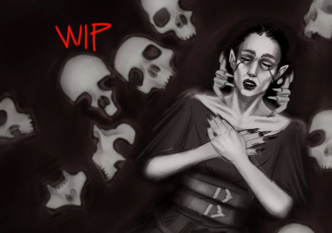 Update for Santa Muerte. Working on it like a madman but not quite. I learned my lessons with Queen of Snakes. #illustration #SantaMuerte #fantasyart #surrealart #flowers #skulls #digitalart #artistsontwitter