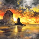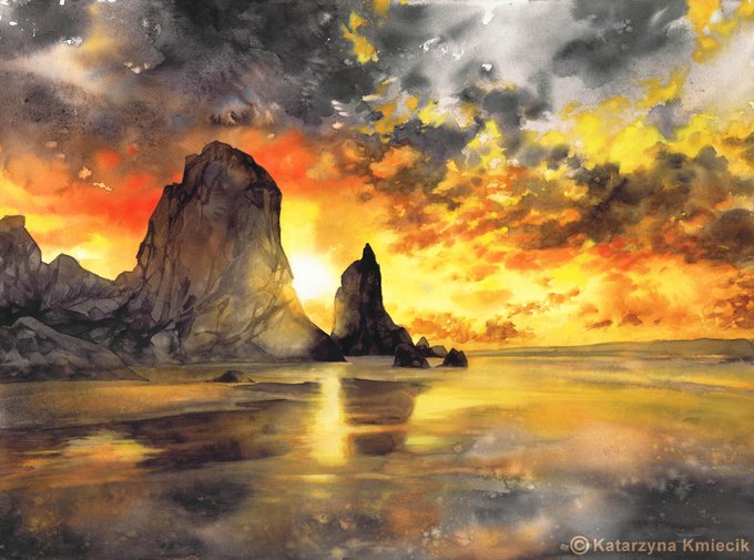 Fiery #sky reflected on the wet surface of the beach sand. I've made this #watercolor painting in December 2018 for the IWS Exhibition in Vietnam (Ho Chi Minh, 20-30 April 2019). Art prints in my Etsy shop: bit.ly/beach-sunset-p…