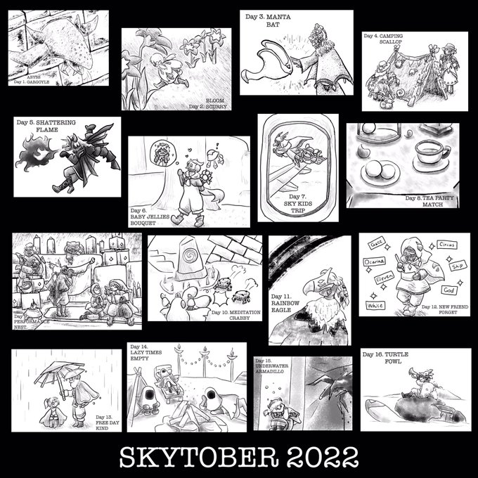 skytober完走です! 公式からのテーマがあったおかげか、参加する方々が多くてとても楽しい1ヶ月でした。 皆様お疲れ様でした!! #inktober2022 #Skytober2022 #thatskygame