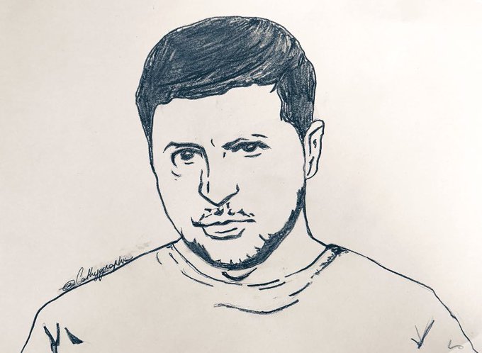 Black, white, yellow & blue! I finished to draw ✍🏻 a portrait of @ZelenskyyUa ! #SlavaUkraïni 🇺🇦