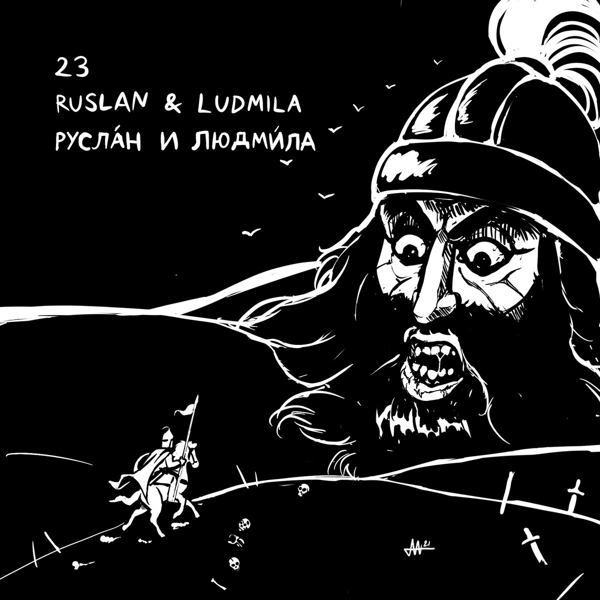 “Slavtober” Day 23- Ruslan & Ludmila Another piece based off a Pushkin story… where a guy squares off against a giant head. #dailyart #dailysketch #inktober #inktober2021 #fantasyart #fantasyartwork #russianfairytale #slavicmythology #slavic #pushkin #alexanderpushkin
