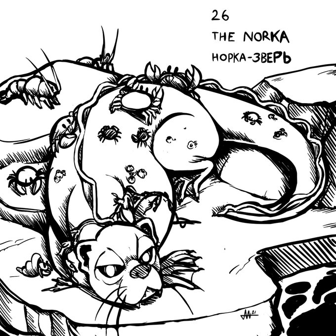 “Slavtober” Day 26- The Norka A beast from a Russian Fairy Tale. “Norka” is also Russian for “Mink” so… have a giant spooky mink. :L #dailyart #dailysketch #inktober #inktober2021 #fantasyart #fantasyartwork #russianfairytale #slavicmythology #slavic #illustration #mink