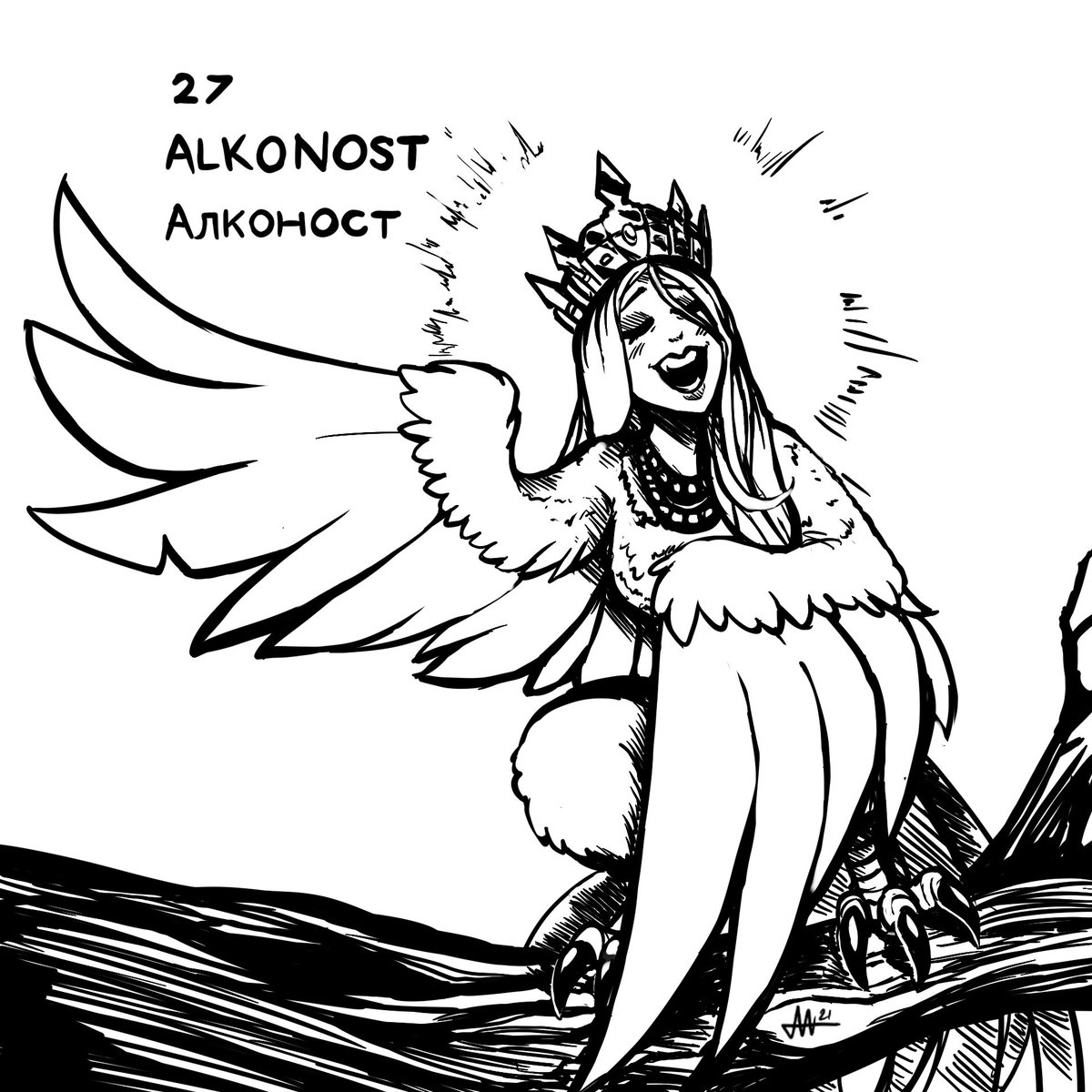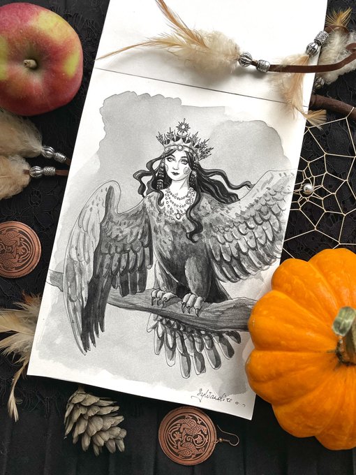 День 16. Птица Каждый год у меня нет-нет, да и проберется что-то славянское в челлендж хд #inktober22 #inktober #sylvandire_art #slavic #mythology