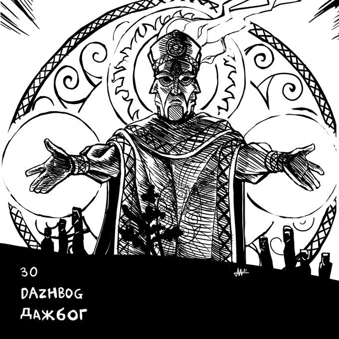 “Slavtober” Day 29- Dazhbog The Slavic Sun God Probably the most detailed piece of the bunch thus far. Hope it looks ok! ONE MORE LEFT!!! #dailyart #dailysketch #inktober #inktober2021 #fantasyart #fantasyartwork #slavicmythology #slavic #illustration #dazhbog #procreate