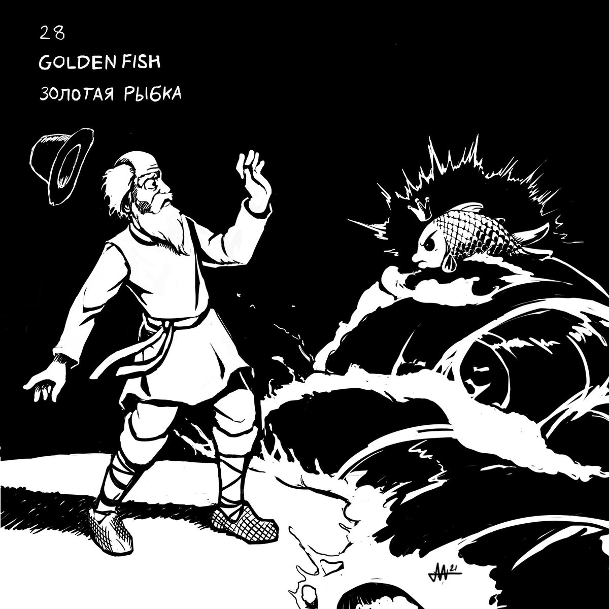 “Slavtober” Day 28- The Golden Fish Ugh… super late with this due to prepping for Halloween and other stuff. Was doing so well, too. :/ #dailyart #dailysketch #inktober #inktober2021 #fantasyart #fantasyartwork #russianfairytale #slavic #illustration #pushkin #procreate