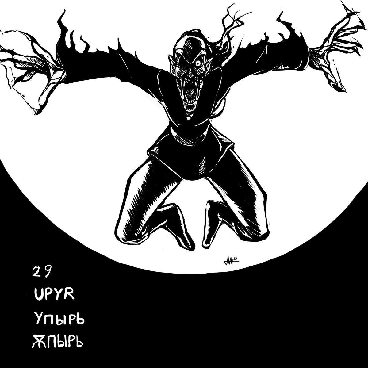 “Slavtober” Day 29- Upyr The Slavic “Proto-Vampire” Pose was a pain to get looking right. X_X #dailyart #dailysketch #inktober #inktober2021 #fantasyart #fantasyartwork #russianfairytale #slavic #illustration #vampire #upyr #undead #procreate
