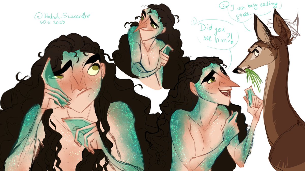 Cylka and her deer friend - Sarna 😆 (my ocs) #art #oc #ocart #originalcharacter #mermay #mermay2023 #drawing #ArtistOnTwitter #deer #fantasy #digitalart #sketch #artmoots #slavic #polishart #characterdesign #characterart
