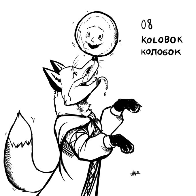 “Slavtober” Day 8- Kolobok AKA the Russian version of The Gingerbread Man #dailyart #dailysketch #Inktober #fantasyart #fantasyartwork #russianfairytale #slavicmythology #slavic #kolobok #foxes