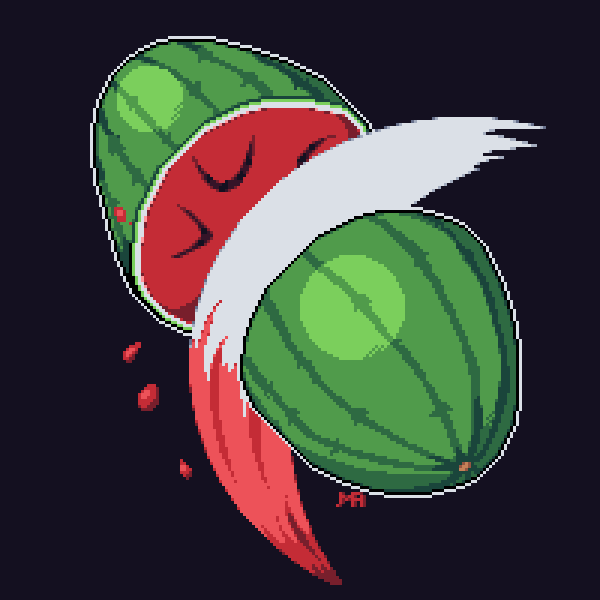 Daily No. 640: A ninja spending their time very wisely. Made for today’s @Pixel_Dailies theme: #slice. Made using #aseprite. #pixelart #ドット絵 #pixel_dailies #FruitNinja
