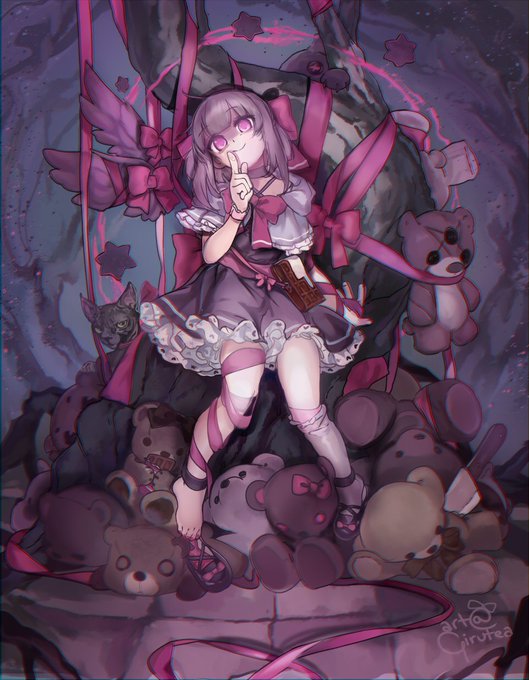 Anniversary twins! I was surprised to find out they share the same date!! 🎀🔪🍫🐸🍃🫧🎂 #lilyartkins #sliceofshadow
