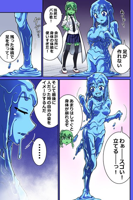 Skebでリクエストして頂いたスライム化TS!その節はありがとうございました! こちらのキャラは依頼者さんのアバターだそうです!最初は1枚にまとまった状態で考えていたのですが、描いている内にいつの間にか3枚に…! 2023年1月28日 #スライム娘 #slimegirl